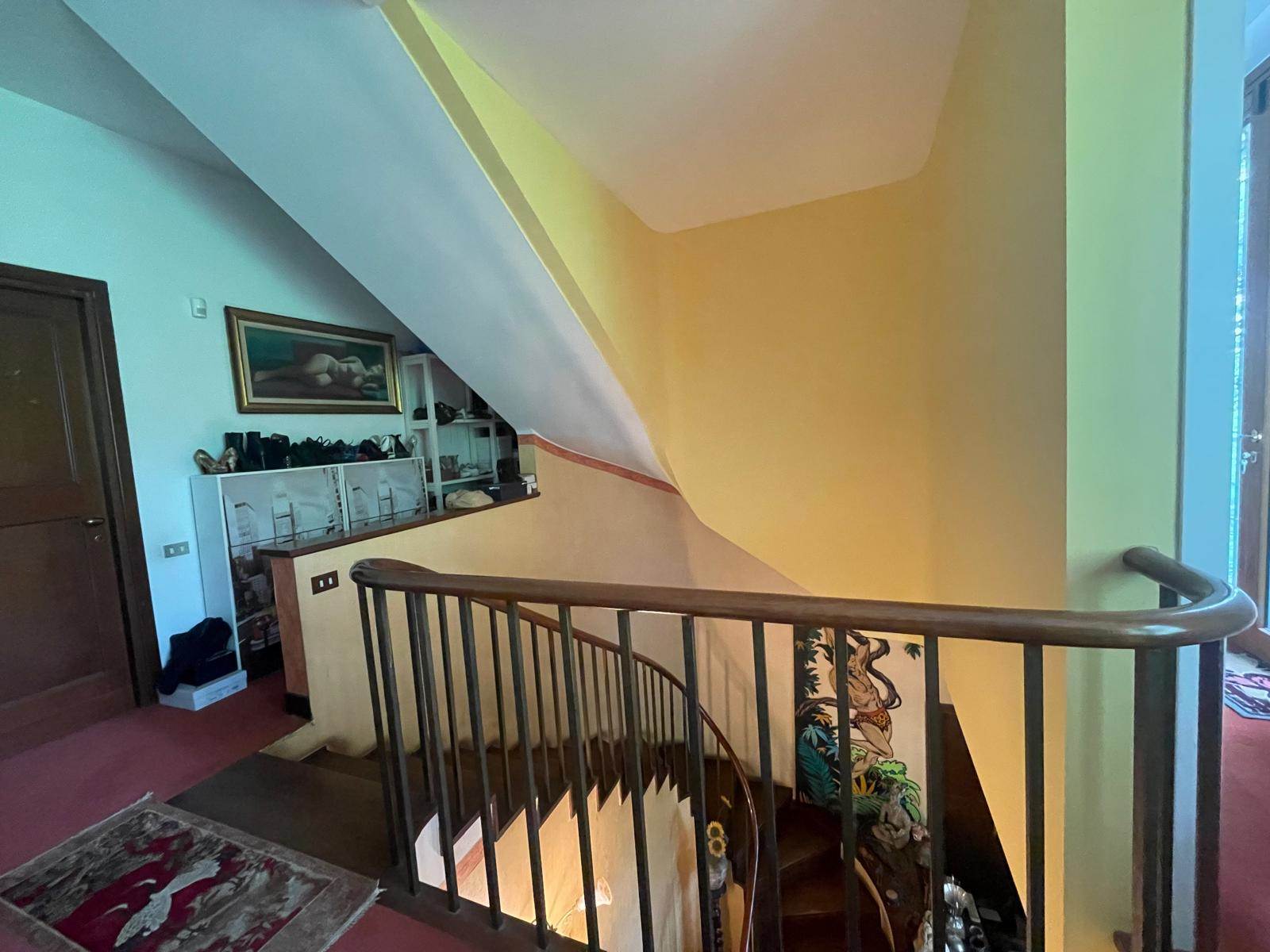 Piano terra con accogliente ingresso di rappresentanza, che introduce agli ambient della casa, un doppio salone, il cuore pulsante della villa, con camino centrale e grandi vetrate affacciate sul parco, spaziosa cucina abitabile, offre un ambiente funzionale e versatile, perfetto per chi ama cucinare e vivere la casa intrattenendo ospiti, due stanze con camino, utilizzabili come studio o area relax, un bagno di servizio.