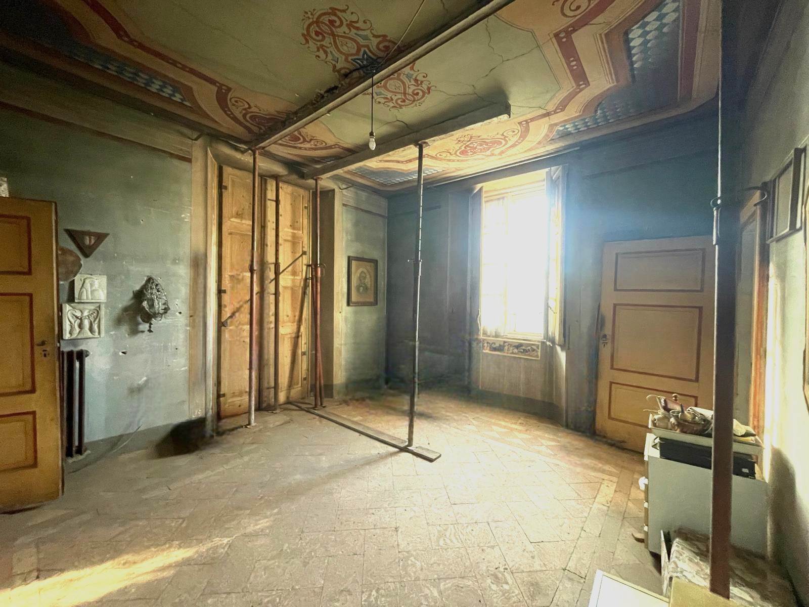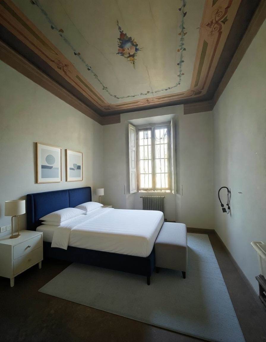 La soluzione conserva ancora alcune caratteristiche architettoniche come finiture interne originali e decorazioni affrescate che conferiscono un fascino autentico, capace di raccontare storia e carattere.