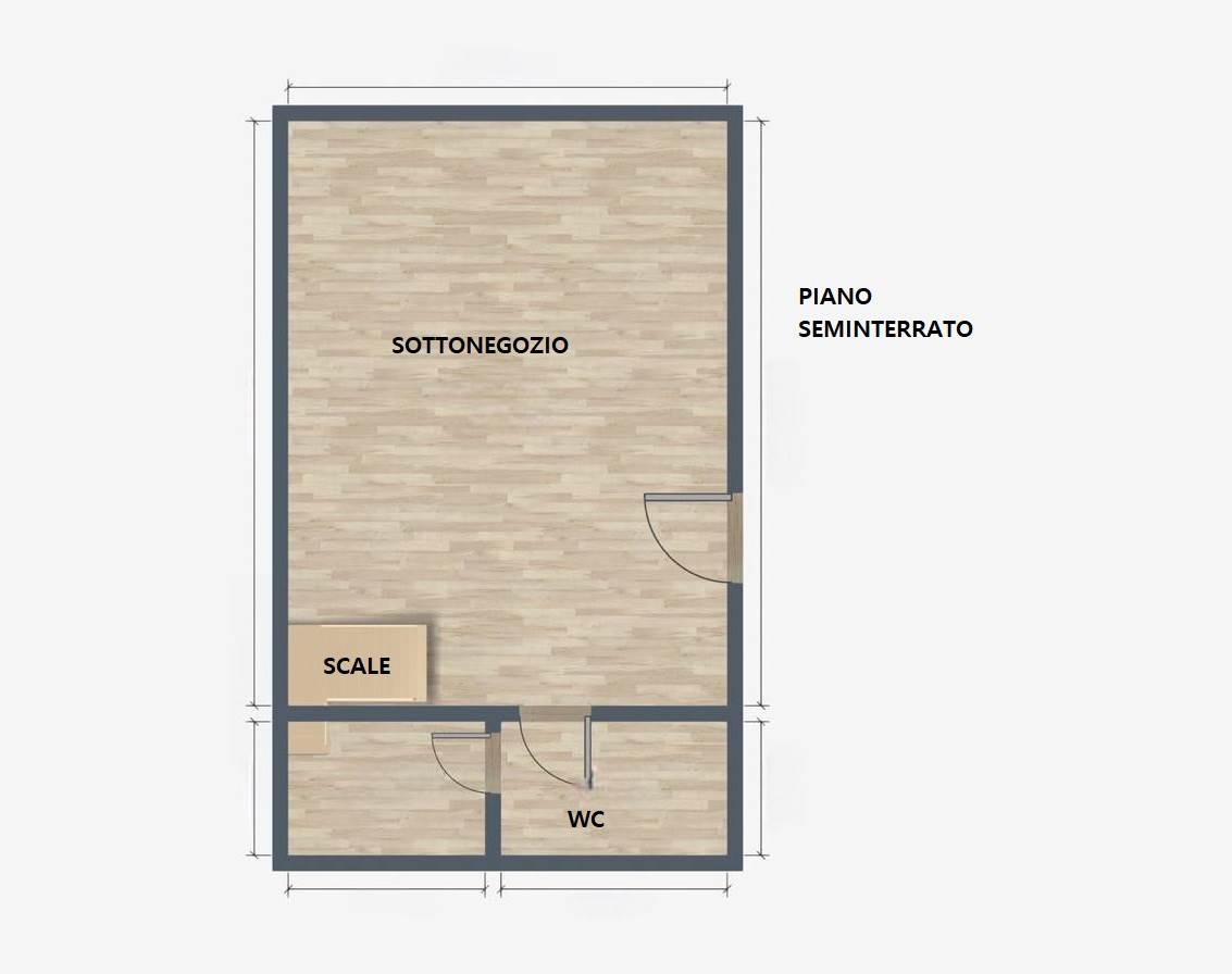 Completa la proprietà un comodo sotto negozio, collegato internamente, ideale come magazzino-deposito e dotato di servizio igienico.